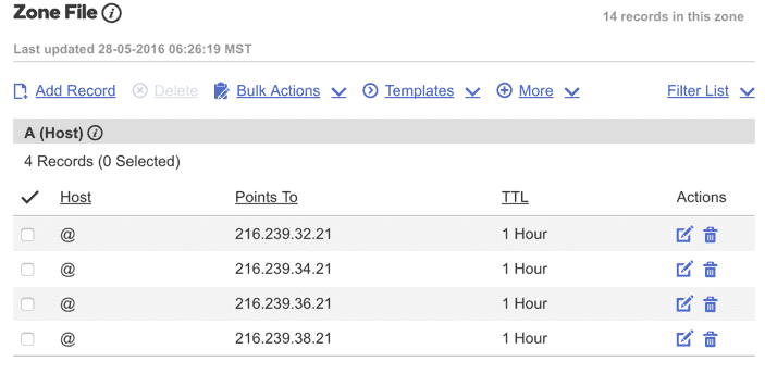 Adding A records to your Domain DNS: